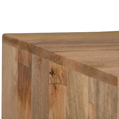 Accentuate your living space with the trendy Moreno End Table. The metal hairpin legs and natural Mango Wood top are the perfect combination to create an industrial, modern piece. The open compartment provides plenty of space for storage. Whether you need a place for your favorite book, night lamp or drink – this is the piece of furniture for you.