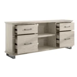 Introducing this magnificent chest with 5 spacious drawers, providing ample space to store and organize all of your essentials, from clothes to linens and more. Each drawer glides open effortlessly on metal ball-bearing glides, offering easy access to your belongings. The sturdy frame can support up to 90 lbs on the top and 20 lbs for each drawer, ensuring longevity and durability. The classic beige color of the body, paired with the elegant wood grain handles, makes it a perfect fit for any decor scheme.