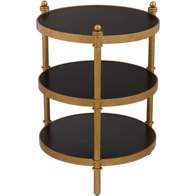 - Cason glam-luxe black and gold round 3-tier side table from the 55 Downing Street brand.