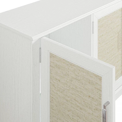 Introducing our stunning 70-inch TV stand, featuring a charming farmhouse-style design with fabric doors. Keep your audio and video cables organized and clean with the convenient cable management cutouts. The rustic ranch style of this TV stand will blend seamlessly with your current decor, elevating the look and feel of your living room. Add a touch of charm to your home entertainment setup with this beautiful piece.