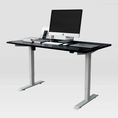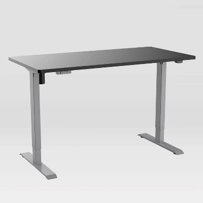 Ships in 2 boxesesk. This sleek designed desk is crafted from a durable particleboard desktop and a heavy-duty steel reinforced frame with T-Style legs. The height control panel includes digital up & down buttons – allowing your desk surface to rise from 29 inches up to 49 inches in seconds. Many studies have shown that these electric-sit-to-stand desks enhance productivity, focus, and comfort. Ships in 2 boxes