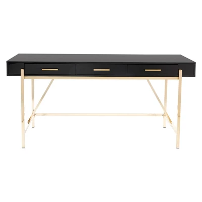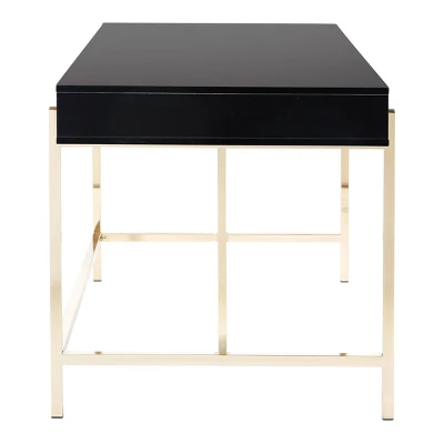 Create the chic workspace of your dreams with our beautiful Broadway desk by OSP Home Furnishings. This stunning high-gloss, white desk combines elegant warm gold detailing with attractive, classic lines for a fresh, modern and sophisticated feel. Designed perfectly for inspiring creativity and productivity all day long. Three ample storage drawers allow plenty of room for your pens, paper and other office supplies. Get the upscale home office you’ve been craving with the Broadway Desk.