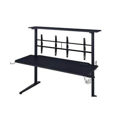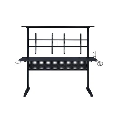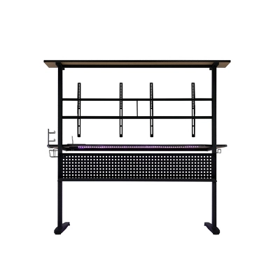 Craft the ultimate battle station with the Canzi Gaming Table. Say goodbye to bad posture and sore necks; this desk boasts two monitor mounts to keep you at eye level. The LED light provides a glow to keep you gaming all night. With built-in handy amenities such as a headrest hook, controller stand, and a cupholder, there is no shortage of conveniences with this table. Mount some speakers on the top shelf to take your gaming experience to the next level.