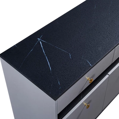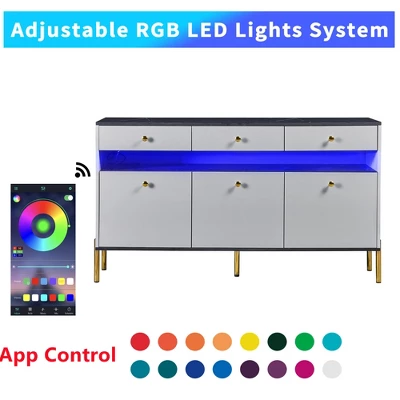 Contemporary Dressing Table With LED Lights And Marble Top, Gray – ModernLuxe