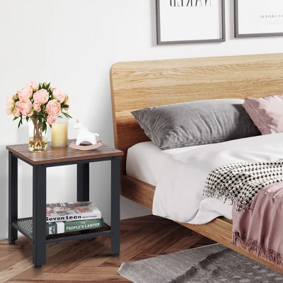 Are you finding a side table for your home to be placed beside sofa and bed? Our stylish side table with a storage shelf is a good choice for you. Constructed of iron and wood, the side table is stable and will provide long time service. It is also multipurpose and can be placed in living room, bedroom and study room to be an end table, sofa table, nightstand, phone table, lamp table, tea table and so on. On the top, it is perfect for your lamp, family photos and other decorations. In addition, the lower shelf with netlike pattern also provides storage space for your sundries. With rustic and concise appearance, the side table is perfect to fit your other furniture in your house.