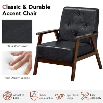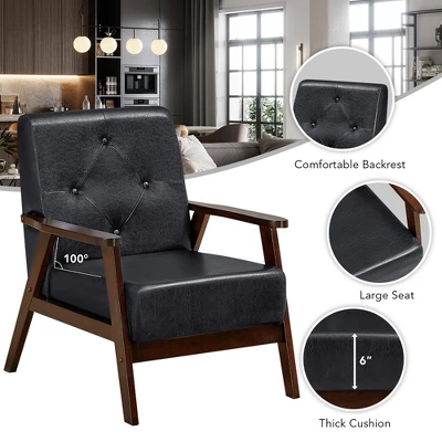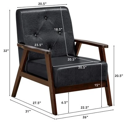 6” cushion made of PU leather and soft sponge provides you with super comfort. Ergonomic backrest, safety armrest, spacious seat and 100° backrest angle enable it to well support your back, waist, hip, arms and legs. With our single chair, you can fully relax yourself in your living room, reception room, office and study. Besides, it’s also designed with solid A-shaped frame, reinforced design and rubber wood legs, allowing for utmost sturdiness. It can support up to 286 lbs. Moreover, backrest button decoration and side screw hole decoration make it a real eye-catcher in your home or office. It’s easy to assemble and maintain in a few minutes.