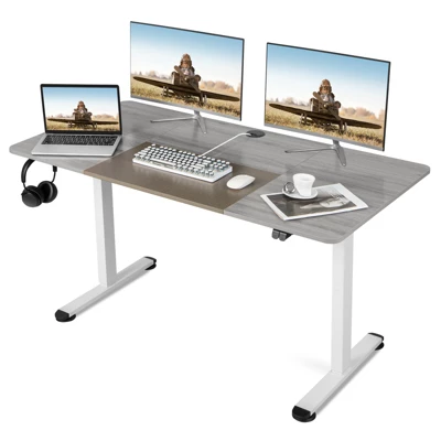 Our electric standing desk will bring you fresh working environment where you can sit or stand! Easy lifting system offers flexible height adjustment with the range of 28.5” – 45.5”, which can well suit your different requirements. More, powerful motor ensures smooth and quiet adjustment without shaking. Compared with other ordinary desk, you can choose to sit or stand while working and studying for less fatigue. The desktop is spacious enough to hold all of your necessary office supplies for easy access. The headphone hook, cable bracket and cable management holes keep different items in a perfect storage space. Just enjoy comfortable working position with this ergonomic electric sit to stand desk!