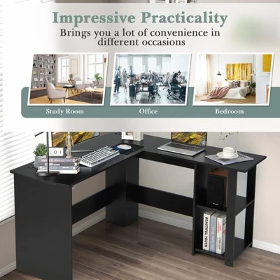 Costway L-Shaped Computer Desk, Corner Desk For Small Space, Home Office Writing Desk Laptop Workstation With 2-Tier Open Shelf