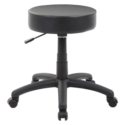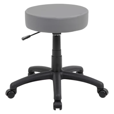 The compact and strong DOT stool in gray is made with functionality and comfort in mind. It is designed with a strong, easy to clean vinyl seat and a 25 inch nylon base with 2 inch nylon dual wheel castors for a smooth roll. The armless, backless stool provides a pneumatic gas lift mechanism for adjustable height options, making this a great fit for most any desk or office and gives you a height range of 18 and 23 inches.