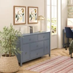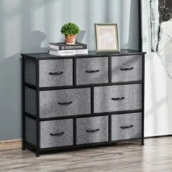 Flash Furniture 5 Drawer Wood Top Cast Iron Frame Storage Dresser With Easy Pull Fabric Drawers