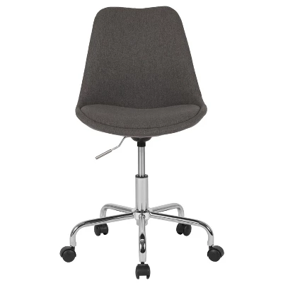 Trendy best describes this swivel task chair to enliven all work spaces. The tapered back design adds character to this desk chair. It’s upholstered in a colorful fabric and has a fixed seat pad. The mid-back chair features a molded design that is created to support the mid-to-upper back region. Chair swivels 360 degrees to get the maximum use of your workspace without strain. The pneumatic adjustment lever will allow you to easily adjust the seat to your desired height. This office chair has a chrome base with dual wheel casters that makes it easy to roll across the floor. The colorfully upholstered task chair is a great choice for your work or home office. Additional Features: Swivel Seat, Pneumatic Seat Height Adjustment, Heavy Duty Chrome Base, Dual Wheel Casters.