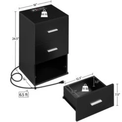 Yaheetech Tall Bedside Table End Table With Charging Station, Black