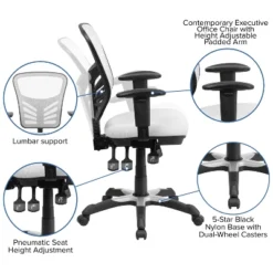 - Contemporary Task Office Chair with Triple Paddle Control Mechanism and Height Adjustable Padded Arms
