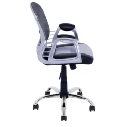 This inviting office chair will provide you with much functionality with easy to adjust triple paddle controls. This chair features transparent, breathable mesh material that allows air to circulate. Mesh office chairs can keep you more productive throughout your work day with its comfort and ventilated design. The locking back angle adjustment lever changes the angle of your torso to reduce disc pressure. The tilt lock mechanism offers a comfortable rocking/reclining motion. The free rein motion is great for taking a quick break from typing to answer phone calls and relax. The waterfall front seat edge removes pressure from the lower legs and improves circulation. The pneumatic adjustment lever will allow you to easily adjust the seat to your desired height. This multi-functional chair will handle all of your wants and needs that you desire in an office chair, along with great comfort.