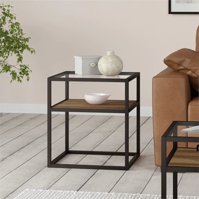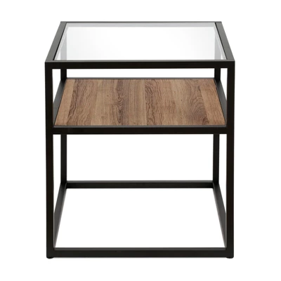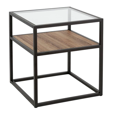 Metal Classic Glass And Wooden Side Table In Brown – Henn&Hart