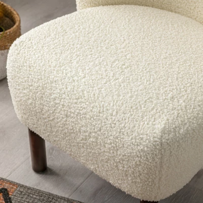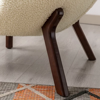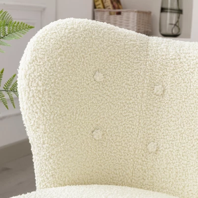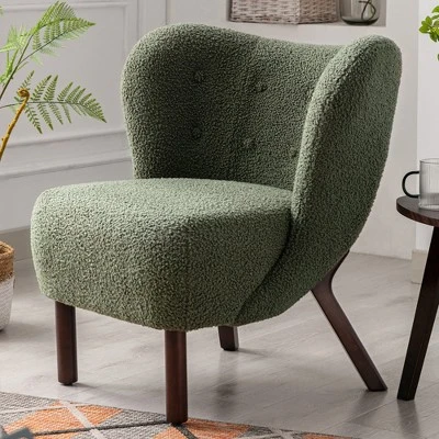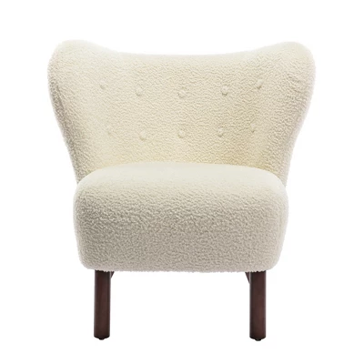 Modern Accent Chair Lambskin Wingback Tufted Side Chair With Solid Wood Legs-ModernLuxe