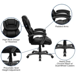 Emma And Oliver 500 Lb. Big & Tall Black LeatherSoft Ergonomic Office Chair With Extra Wide Seat