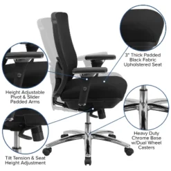 Emma And Oliver 24/7 350 Lb. Big & Tall Black Mesh Synchro-Tilt Swivel Ergonomic Office Chair