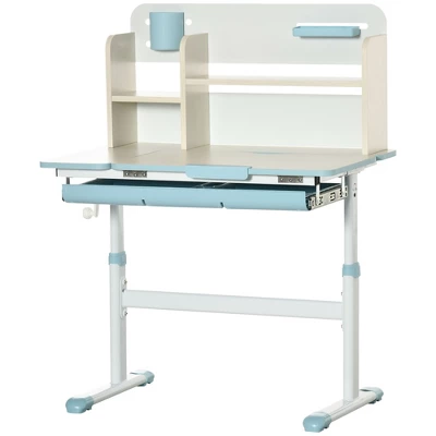 Qaba Kids Desk, Height Adjustable Children School Study Table, Student Writing Desk With Tilt Desktop, Drawer, Storage Shelf, Pen Holder
