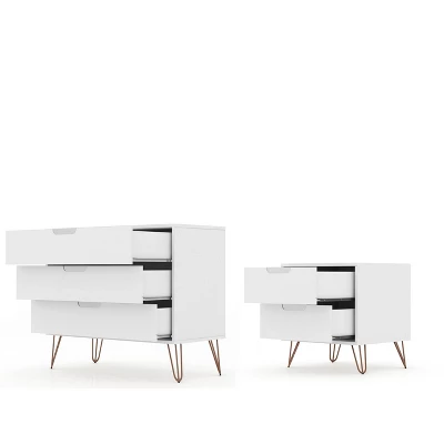 - Mid-Century Modern Set of 2 Dresser and Nightstand for Bedroom Use.