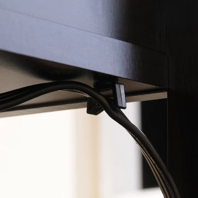 - Sliding top reveals charging station with power strip for mobile electronics storage