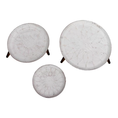 Revamp your home decor setting by bringing in this farmhouse style Table, available in a set of 3, which comes with bowl shaped top and rests on angled tripod base. Constructed from mango wood frame, it is accented with a brown and white finish. The set can be used for multiple purposes to whisk your daily activities and at the same time will enhance the overall aesthetics of your place.