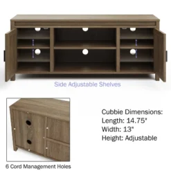 65″ Traditional Full Glass Door TV Stand For TVs Up To 80″ Gray Wash Oak – Merrick Lane